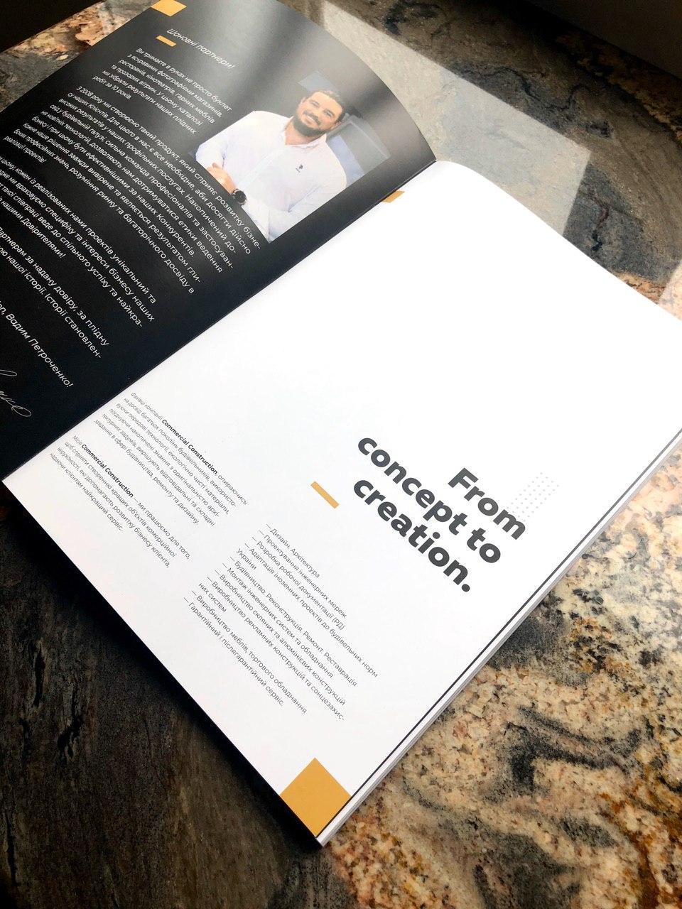 In one catalog it is needed to collect the results of the company's work during 10 years on the construction market. The catalog should produce a WOW effect on a potential customer and show great experience and reliability of a construction company.
