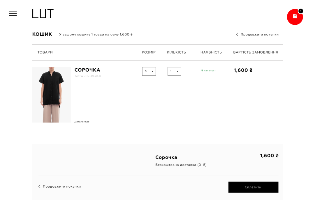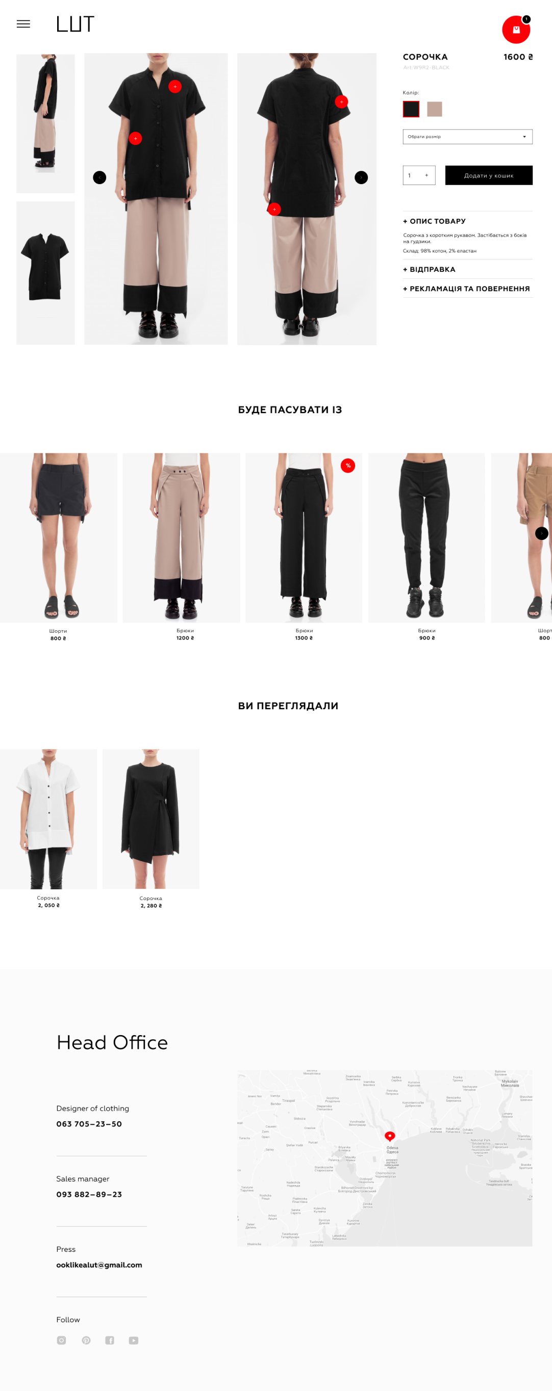 LUT — online store of designer clothes. The task was to create a convenient design of the internal pages, taking into account the given style of the homepage.